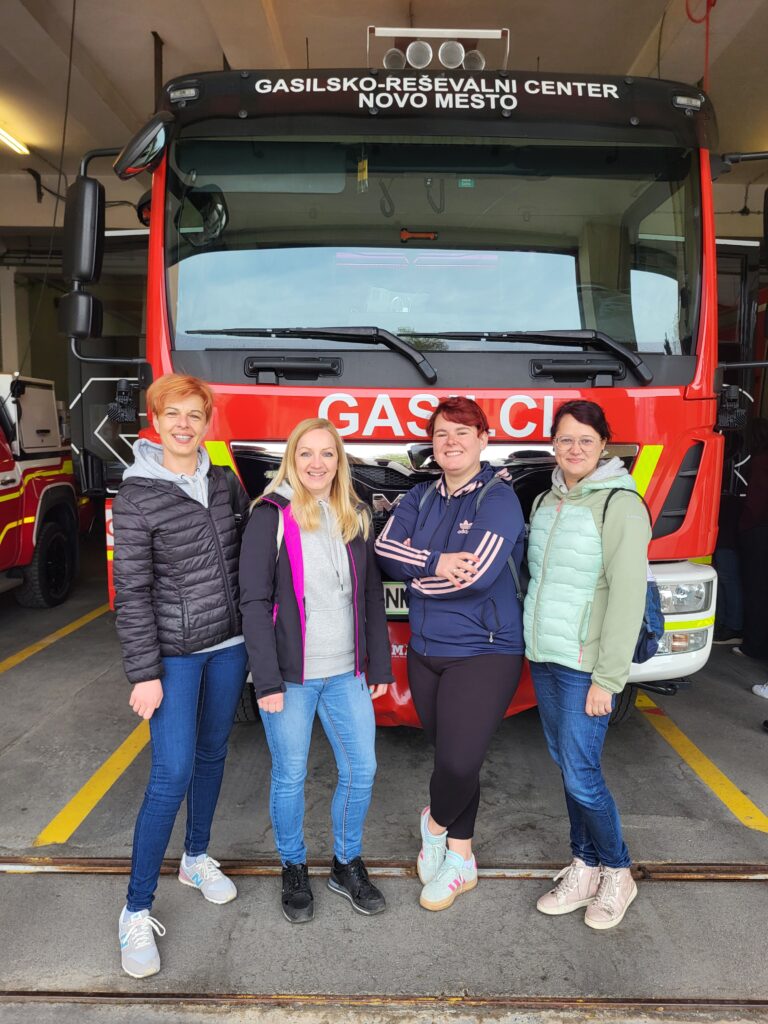 Najprej smo obiskale Gasilsko-reševalni center Novo mesto, kjer so nam prijazni gostitelji predstavili svoje delo, opremo ter organizacijo intervencij. Ogled centra nam je ponudil vpogled v zahtevno in odgovorno delo gasilcev ter reševalcev, ki vsakodnevno skrbijo za varnost ljudi in premoženja.